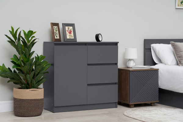 Комод с 3 ящиками и 1 дверью Челси 800 (Миф) на mebelmart-smolensk.ru за 4 807 руб. Быстрая доставка по Смоленску и Смоленской области. Работаем по всей России. Появились вопросы о наличии, комплектации товара? Задайте их менеджеру по телефону 8(800)505-49-71, в онлайн-чате на сайте или по почте. Оплачивайте покупки картой, наличными, безналичным расчетом. Доставка до подъезда, подъем и сборка мебели в Смоленске, цены уточняйте у оператора. Есть товар в наличии.